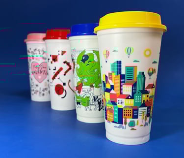 Nuestro vaso cafetero reutilizable es excelente para bebidas calientes o frías